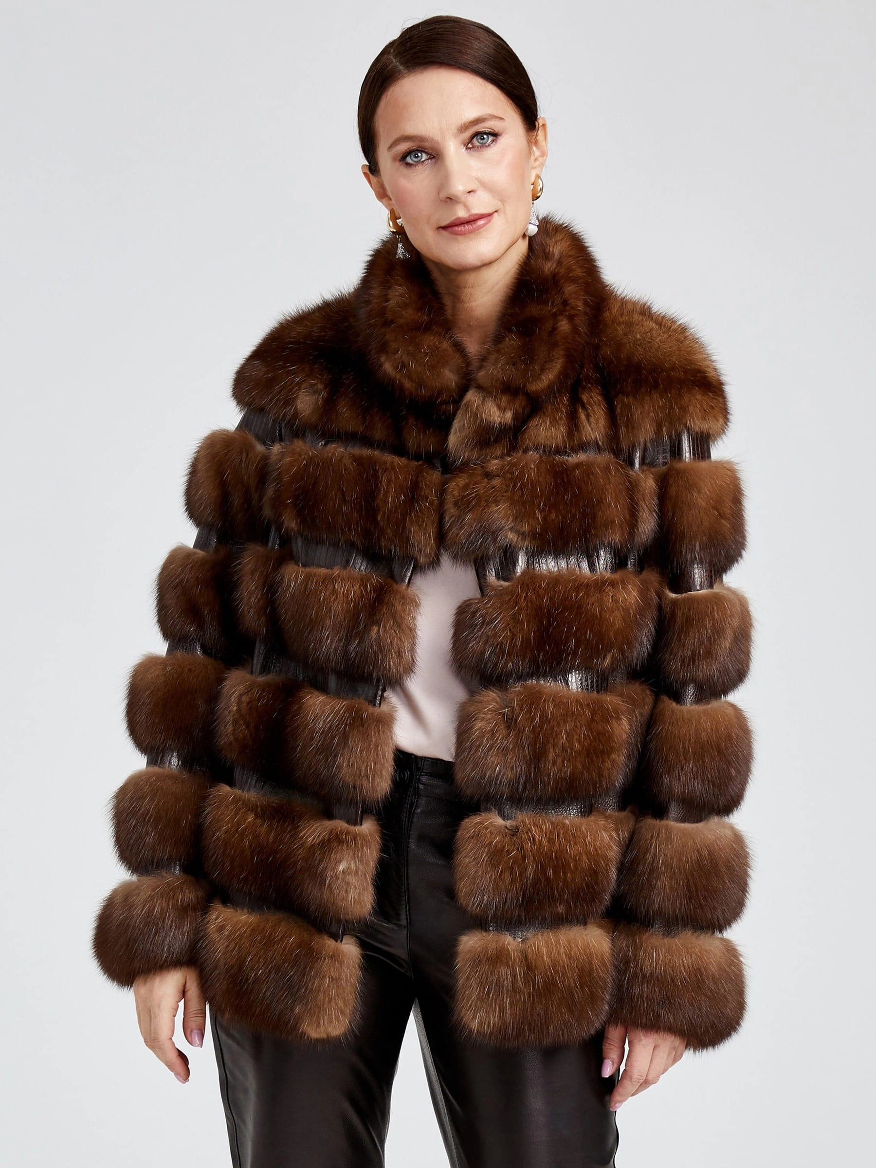 Зимний комплект женский: Шуба из меха соболя С-2 Ребекка + Брюки 02, коричневый/черный, р. 44, арт. 111317